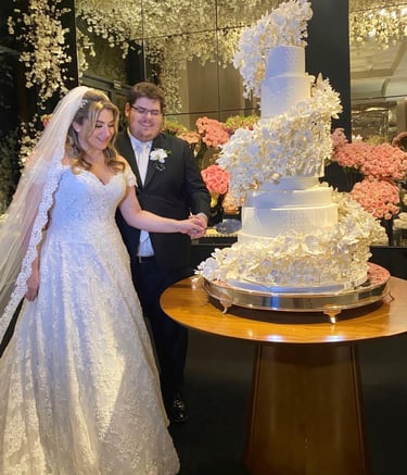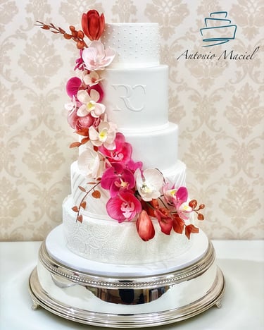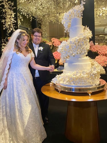 A empresa utiliza uma grande variedade de materiais e equipamentos em conformidade com aquilo que há de mais moderno no cenário internacional de Cake Design. Outro diferencial são as flores de açúcar com realismo impecável.